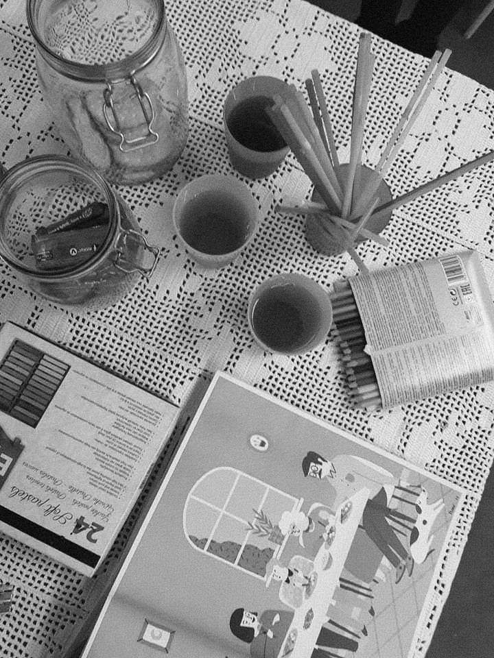 Er zijn verschillende workshops te volgen. Zo is er voor kinderen de mogelijkheid om te komen tekenen. Tijdens deze lessen wordt er steeds iets bijgeleerd op een leuke manier, en is zéker ook ruimte voor je eigen idee! Ook worden ze uitgedaagd om nieuwe dingen te proberen.