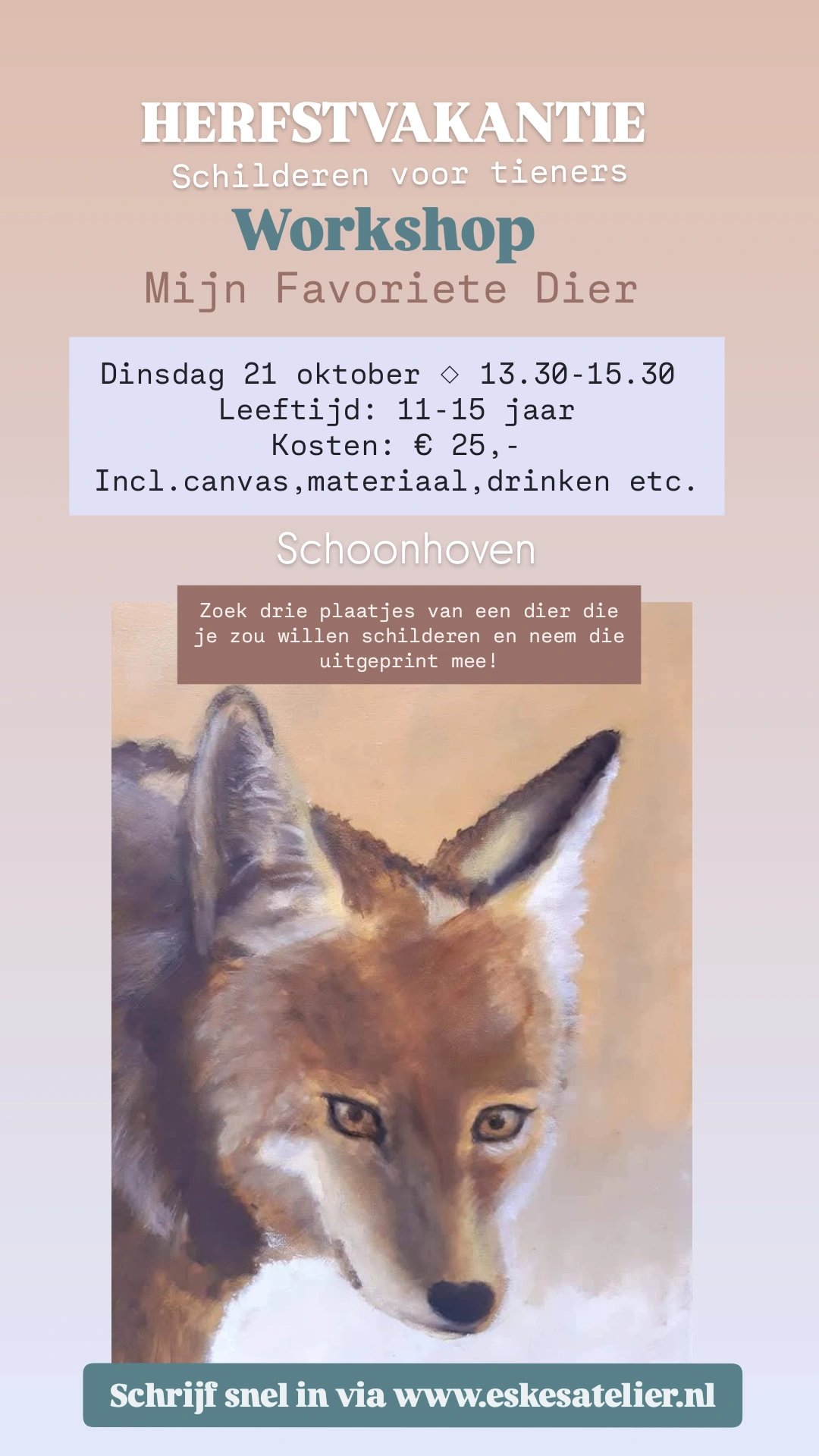 Kom dan gezellig schilderen. Zoek thuis vast naar wat foto’s van een dierenkop (kies maar 3 verschillende ) en print die uit.