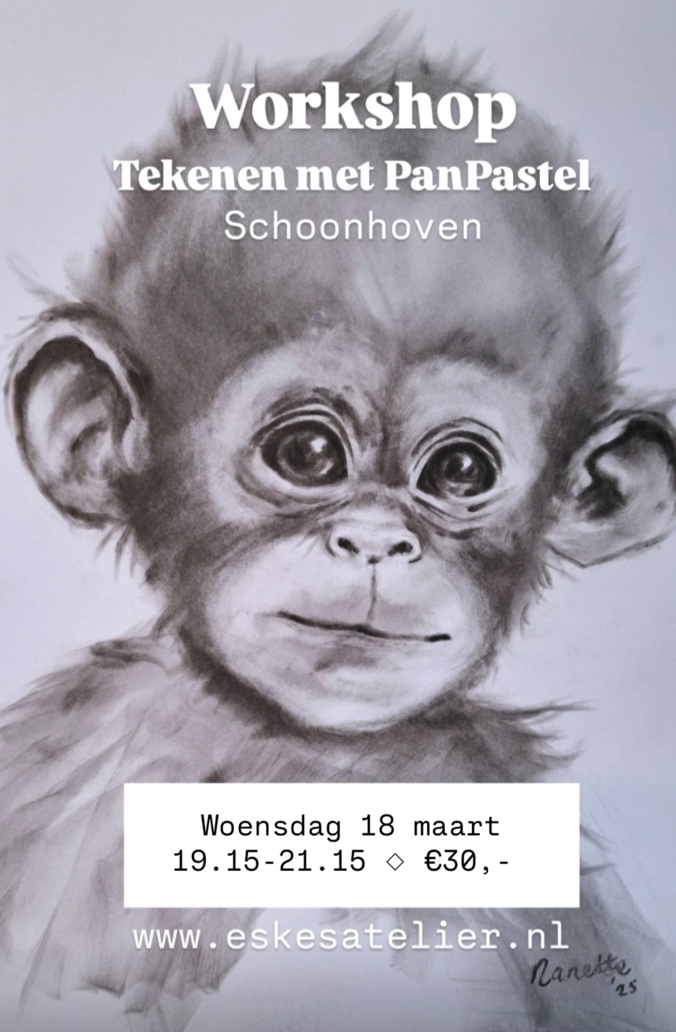 Je hoeft GEEN ervaring te hebben!! We ontdekken wat dit materiaal doet, oefenen hoe het werkt en je wordt zo stap voor stap begeleidt. Je hebt twee volle uren tijd om jouw apenvriendje op papier te krijgen. En dat gaat je zéker lukken!